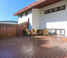 Stofa/borðstofa eru tvær bjartar og rúmgóðar, gengið er út á ca 30 fermetra suðursólpall úr stofu.