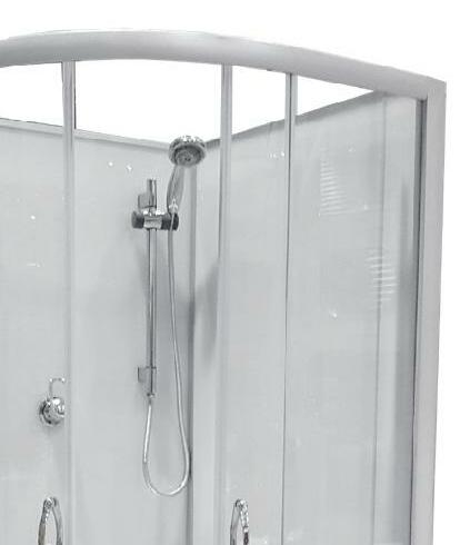 Baðherbergið er með sturtu og salerni og innréttingu við vask.