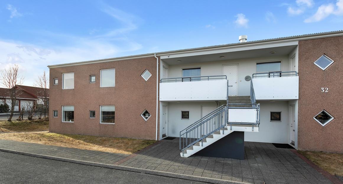 Allt þetta í snyrtilegu tveggja hæða fjölbýlishúsi með glugga í suður og austur en séringang til norðurs.