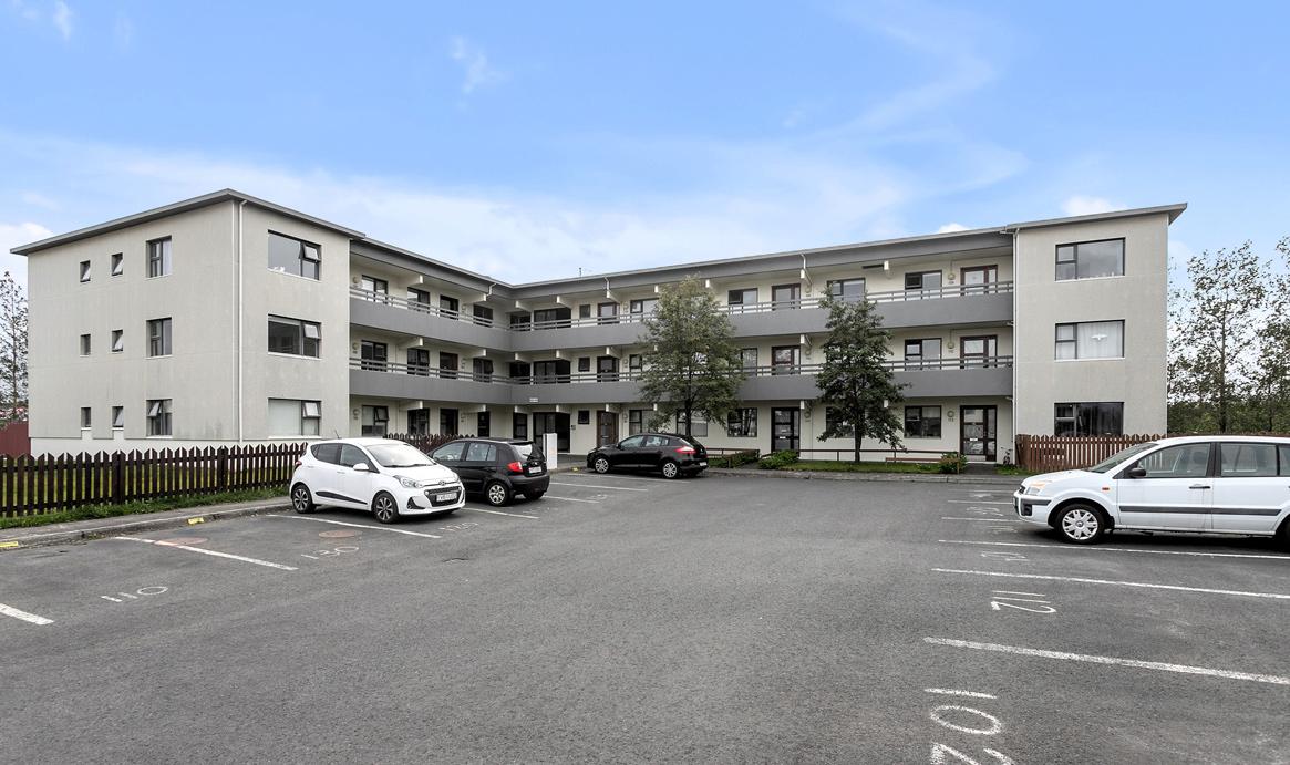 Eignin skiptist í forstofu, eldhús, stofu/borðstofu, þrjú svefnherbergi, baðherbergi og þvottahús. Í sameign er hjólageymsla og sér geymsla. Gengið er ínn í íbúðina af opnum svalagangi.