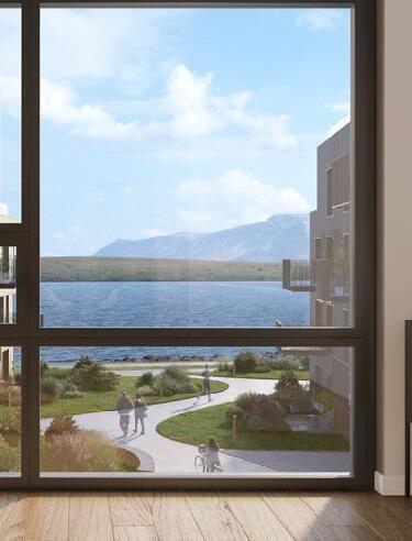 Við Eiðsvík í Gufunesi er að rísa spenn íbúðabyg gð í gömlu iðnaðarhverfi sem kvikm avver og fyrirtæki í skapandi g Landslagið er einstakt; vogskor nir klett með svörtum og g ylltum sandi með úts Gelding anes, Viðey, , Esju og miðborgin