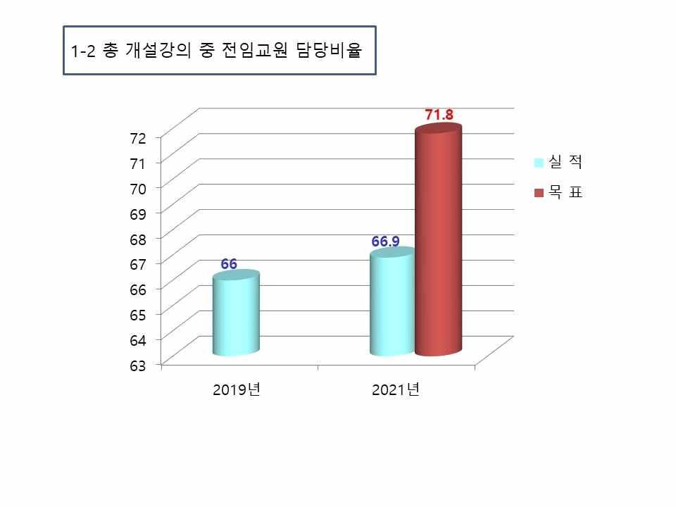 1-1 진임교원확보율 76.1 1-2 총개설강의중전임교원담당비율 71.8 1-3 소규모강좌비율 43.1