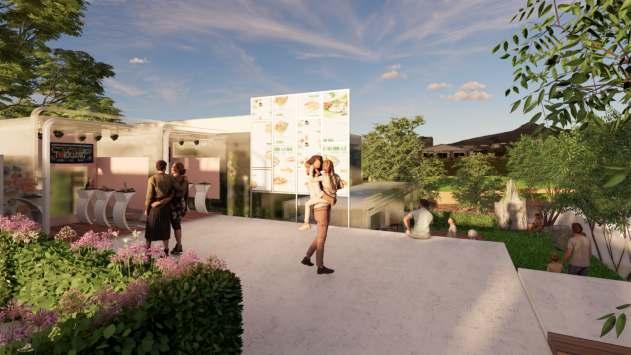Rampsupportactivitiesunder:foodplaza,miniatureartsselling,seating,playscape