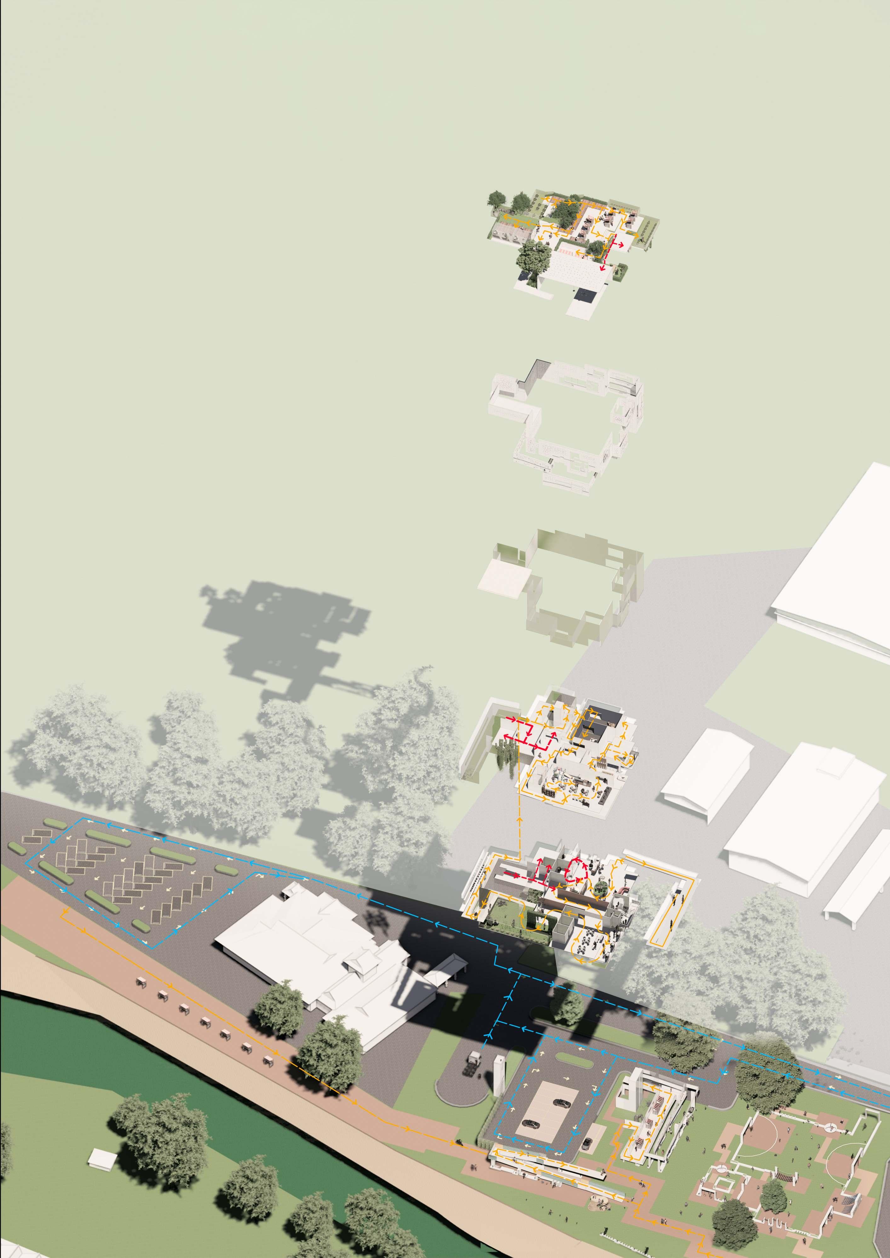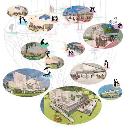 Flow:ParkingArea-MainLobbyTemporaryExhibition-MedanSatayRampExhibition-RoofActivitiesEncloseExhibition-Lounge-WorkshopParkingArea