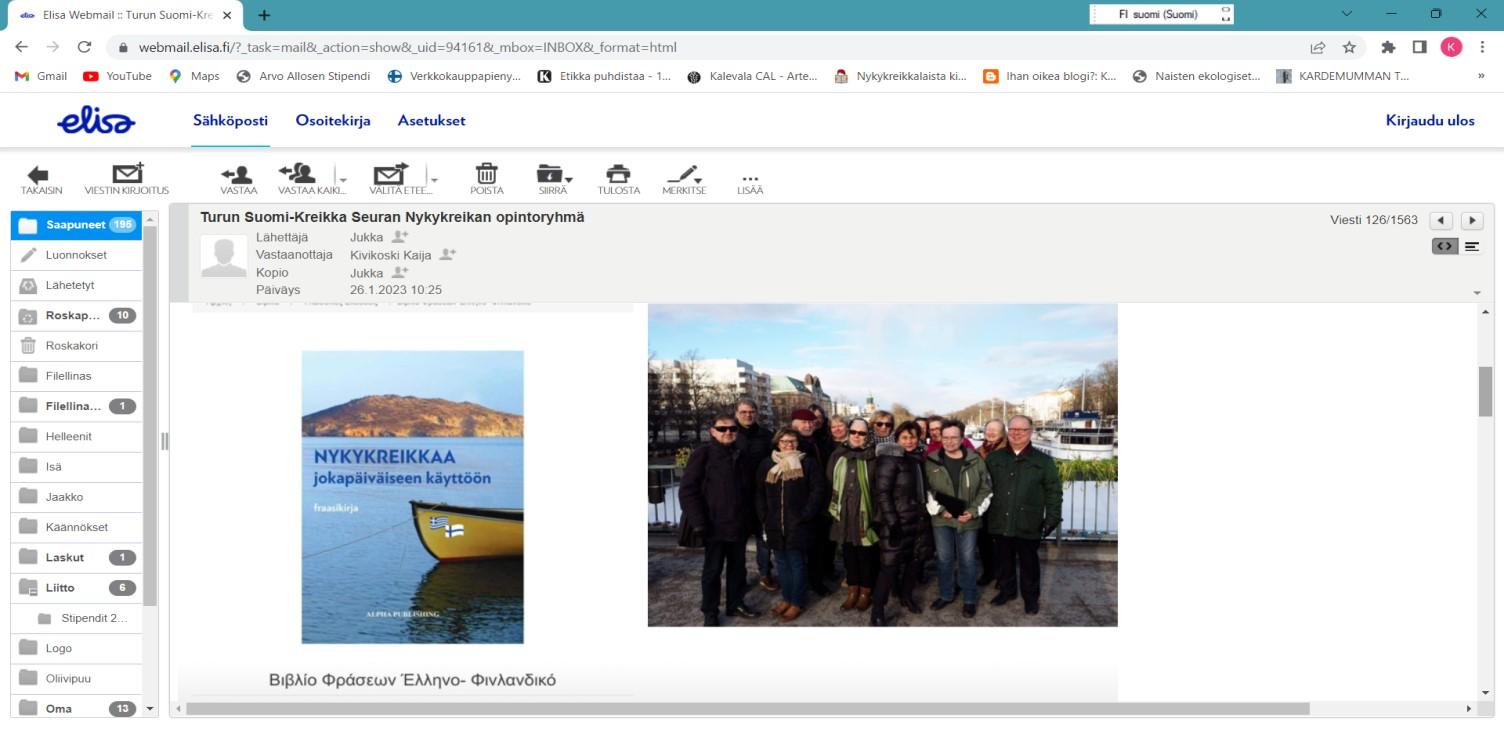 Opintoryhmämme on juuri saavuttanut 9 vuoden iän. Vuoden 2016 alussa Turun Työväenopisto lopetti nykykreikan jatkokurssit ja jo silloin hyvin sitoutunut joukko jatko-opintovaiheeseen tulleita kielen harrastajia perustivat ryhmän opettajansa Kirsi Melvola-Georgakarakoksen esityksen pohjalta.