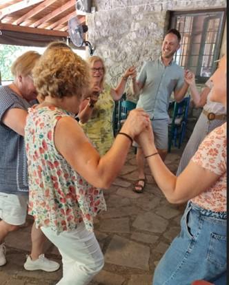 Kuopiossa tanssi on kiidossa ja ei tilaisuutta, jossa ei tanssittaisi. Toki pikkujouluissa tanssi on oleellinen osa illatsuja, ja tanssijat karkeloivat Kreetan parketilla kiivaaseen tahtiin. Illan aikana nähtiin kolmen hengen tanssiesitys, jonka esittivät Urpu-Maarit Bruun, Mirka Stranden ja Tiina Sahlman. Yleisötansseja tanssittiin sekä yhdistyksen jäsenten vetämänä kesken että Pastori Zorbaksen kiihdyttämänä.