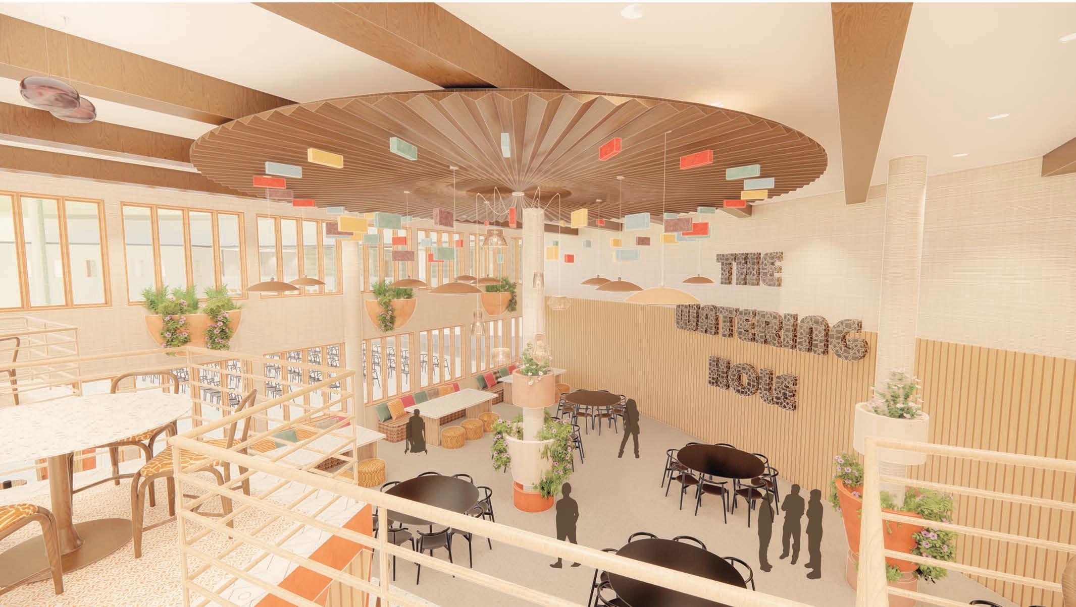 International food will be integrated into the dining hall experience, and supported by the cafeteria’s signage, and seating variety.