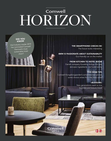 THE SMARTPHONE CHECKS IN! The future looks interesting BMW IS PASSIONATE ABOUT SUSTAINABILITY Eco-friendly car on the market FROM KITCHEN TO HOTEL ROOM Danish company Ecooking brings the best skincare ingredients into hotel rooms FIVE WINE TIPS Comwell Kongebrogaarden’s sommelier has picked some choice wines from the wine cellar »BLEISURE« New generations want to mix business and leisure travel