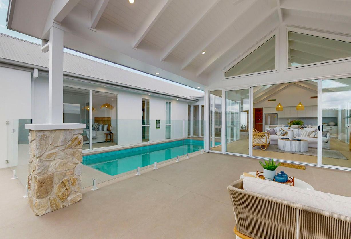 The glistening gem in this spectacular home is the ingenious integration of a courtyard swimming pool that’s not only a treat for those who love a dip, but also a soothing, sparkling water backdrop to the main living areas.