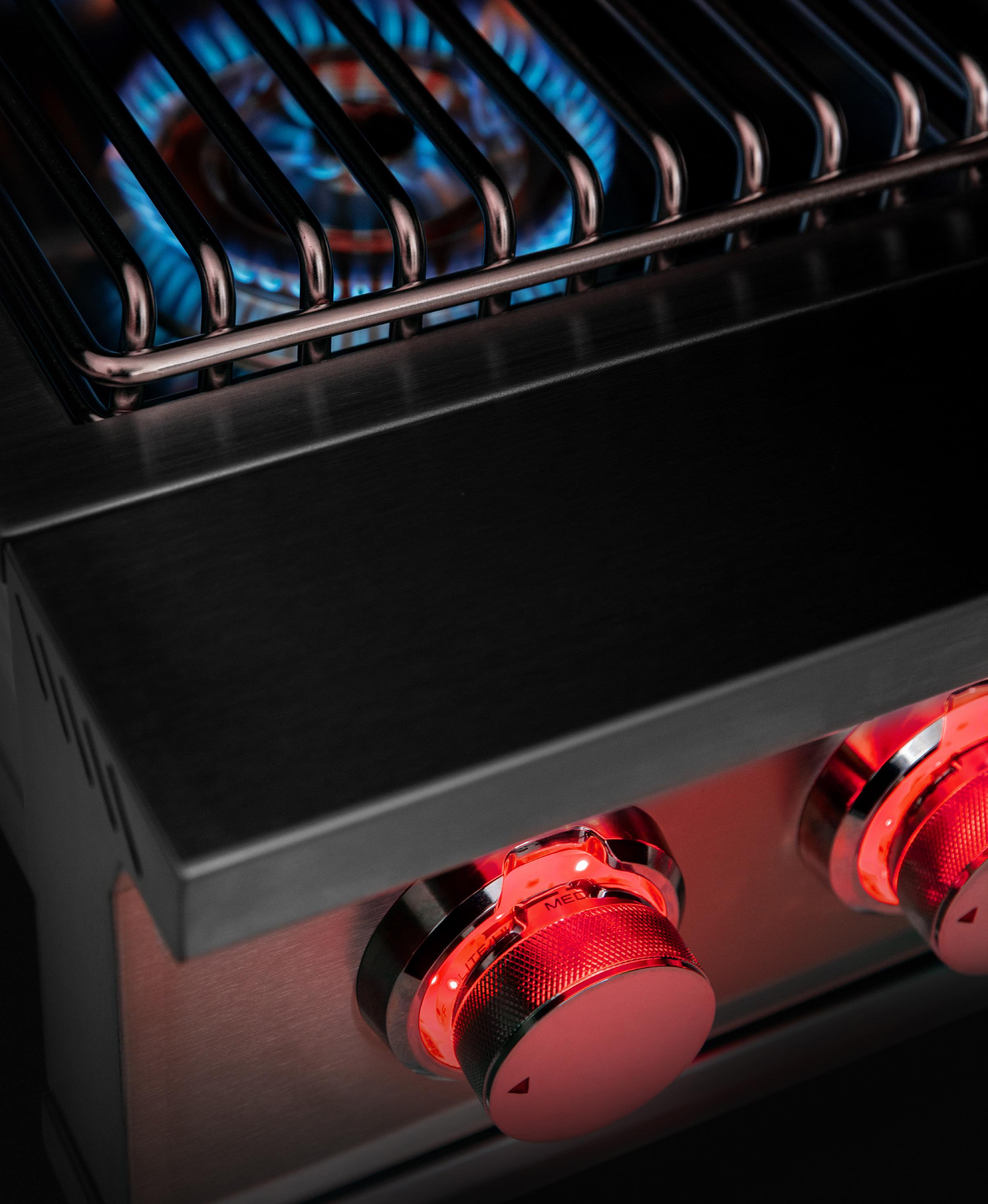 Two interior halogen lights help illuminate the expansive grilling surface, while a full-length LED strip gives maximum front panel visibility. The knobs feature a backlit ON/OFF indication light, so you can easily and safely see which burners are ignited.