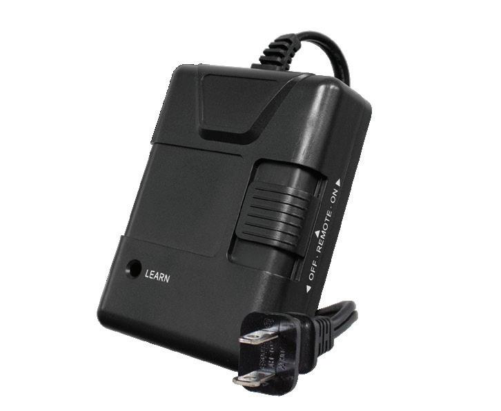 110VAC receiver, slide switch ON/REMOTE/ OFF to manually operate the appliance