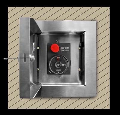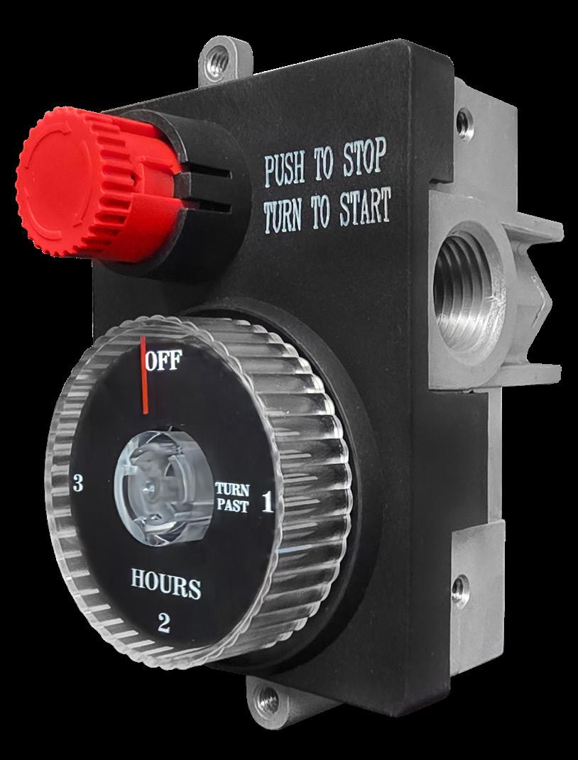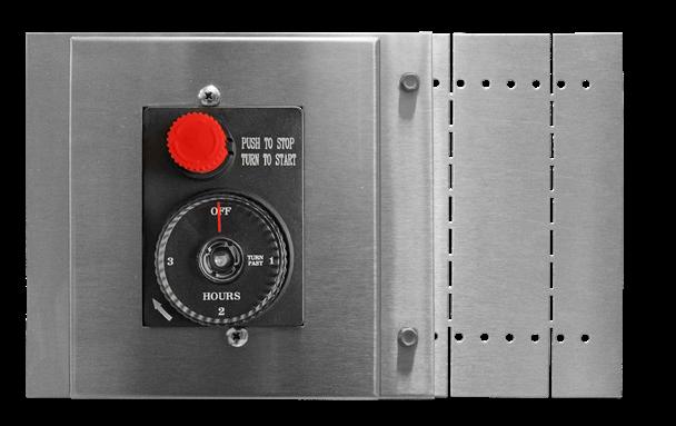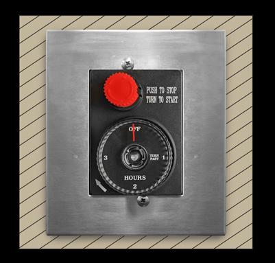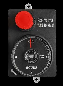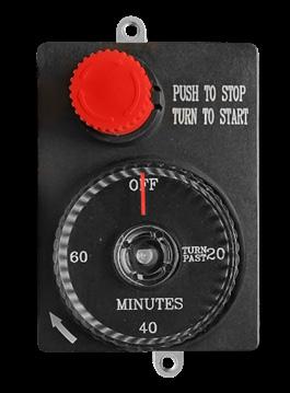 Mechanical timer with manual emergency shut-off. 3 hour countdown timer.