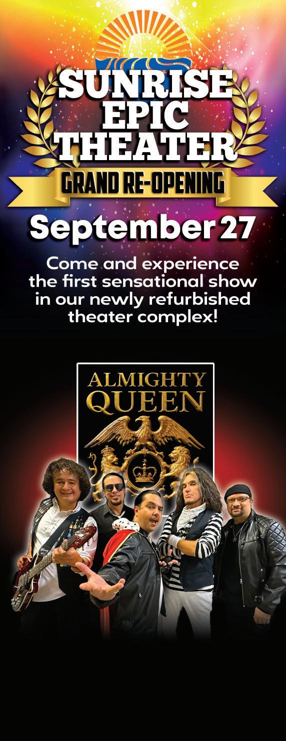 ALMIGHTY QUEEN brings you the absolute best of Queen, featuring musicians from national touring acts. The pinpoint musicianship and the Freddie-like vocals capture the essence of one of the world’s favorite bands!