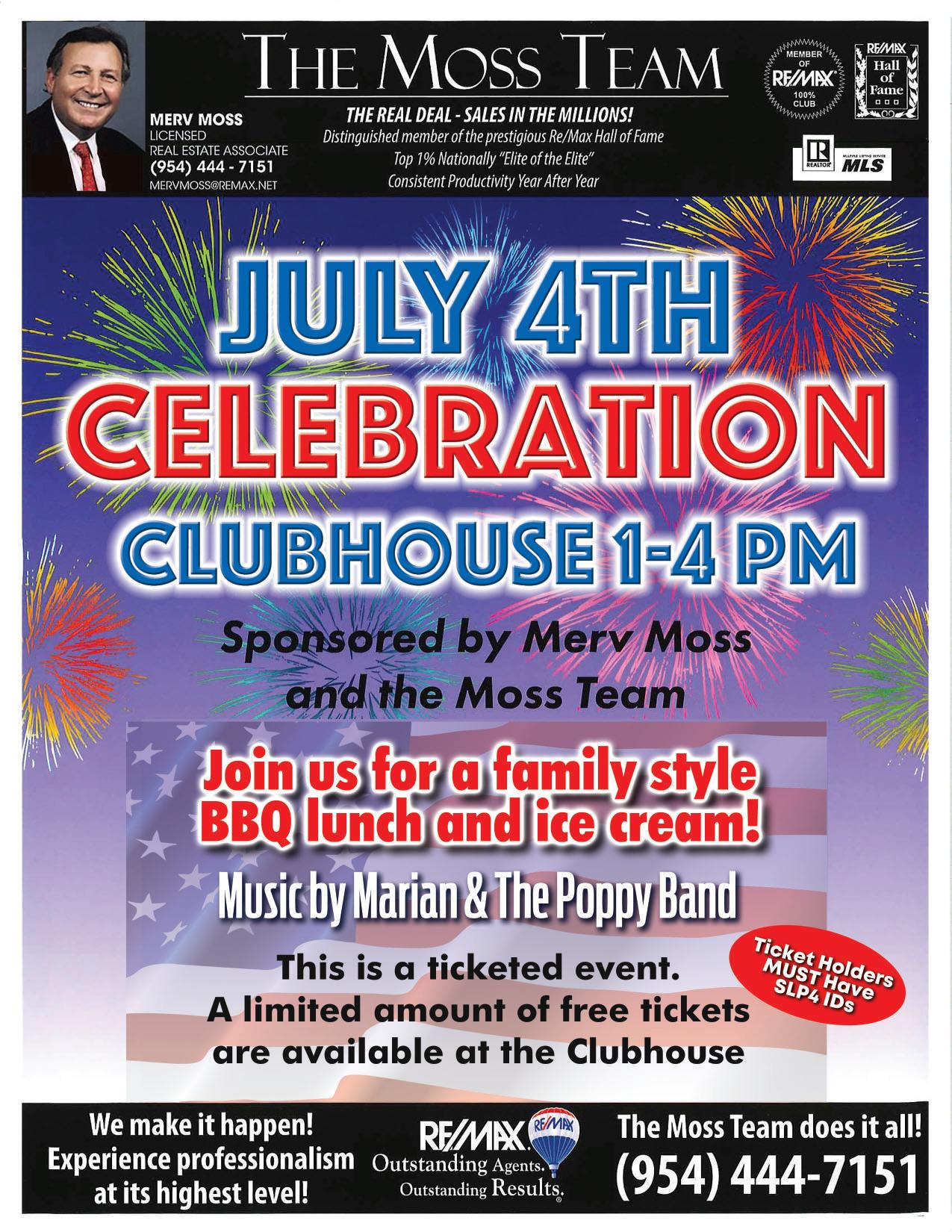 • El sábado julio 26 a las 7PM tendremos un show en el teatro de “Classic Rock” presentando los “Fabulons.” Entradas disponibles en la ventana de taquilla localizada en la casa club.