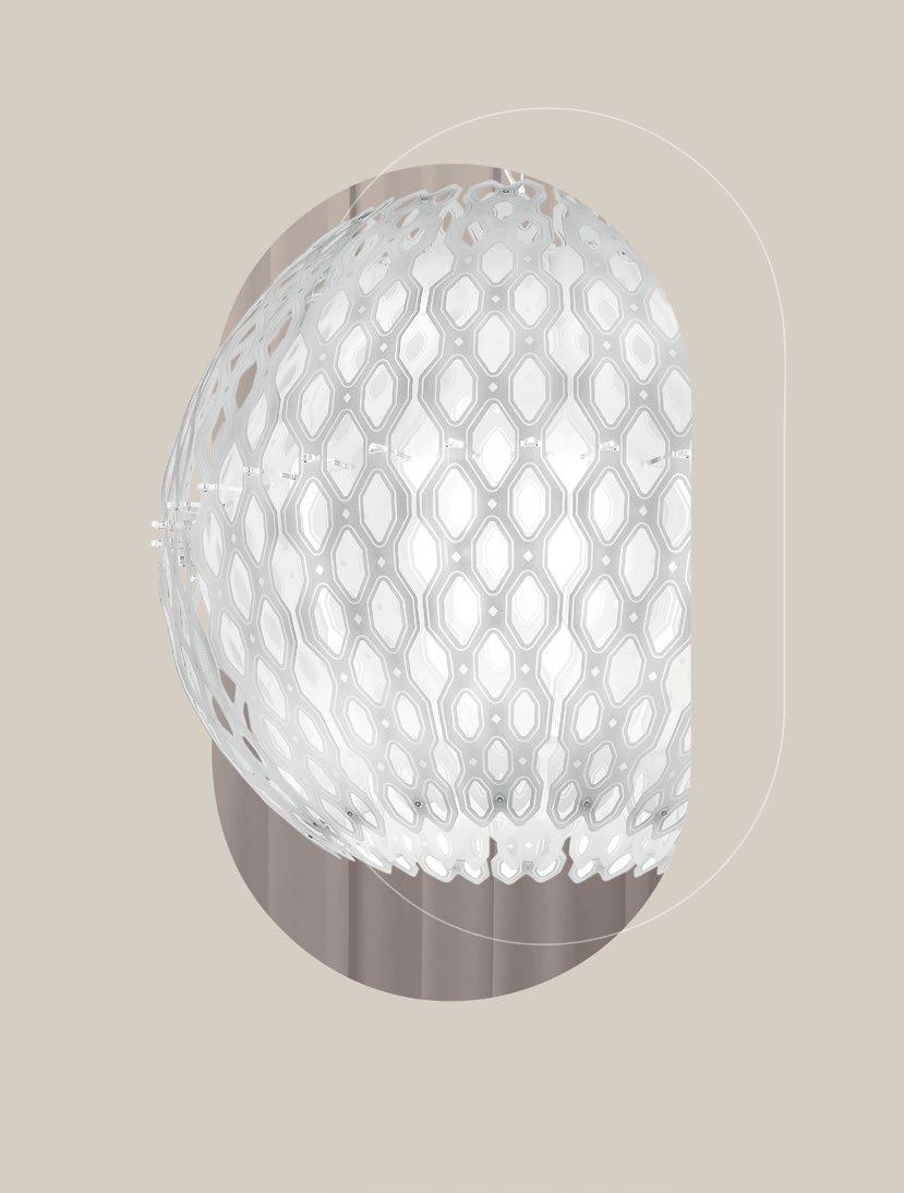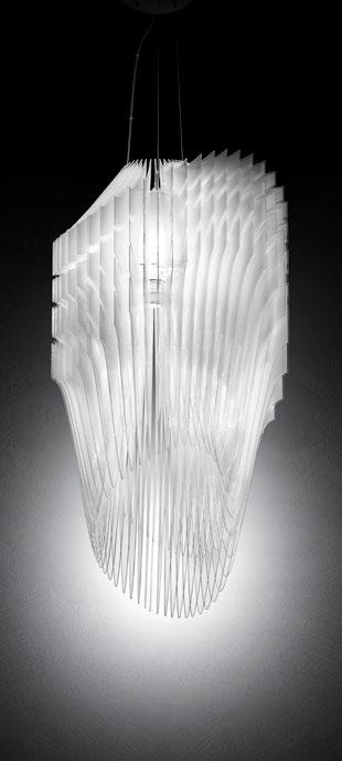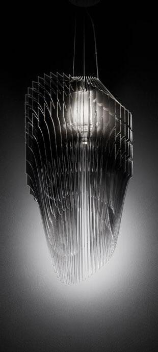 In onore del 10° anniversario della collaborazione fra Slamp e Zaha Hadid Design nasce la versione modulare dell’iconico best seller Aria, firmato da Zaha Hadid nel 2013. La scultura luminosa è composta da un corpo illuminante modulare che crea onde sinusoidali nello spazio, avvolta da layer in policarbonato tutti diversi fra loro che creano un disegno fluido e visionario e che, nel punto più alto della lampada, arrivano ai 2 metri di altezza. Grazie ad un attento studio sulla luce, essa cambia ed evolve a seconda del punto di osservazione: il corpo luminoso è infatti realizzato in Lentiflex®, materiale capace di fluidificare e propagare il flusso luminoso. È disponibile in due finiture, total white e metallizzata in oro, metallizzazione che si ottiene tramite la vaporizzazione di una barretta di alluminio in camera iperbarica. Realizzata su misura per progetti custom.