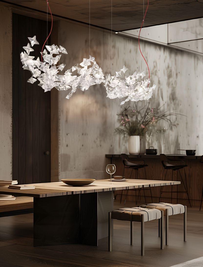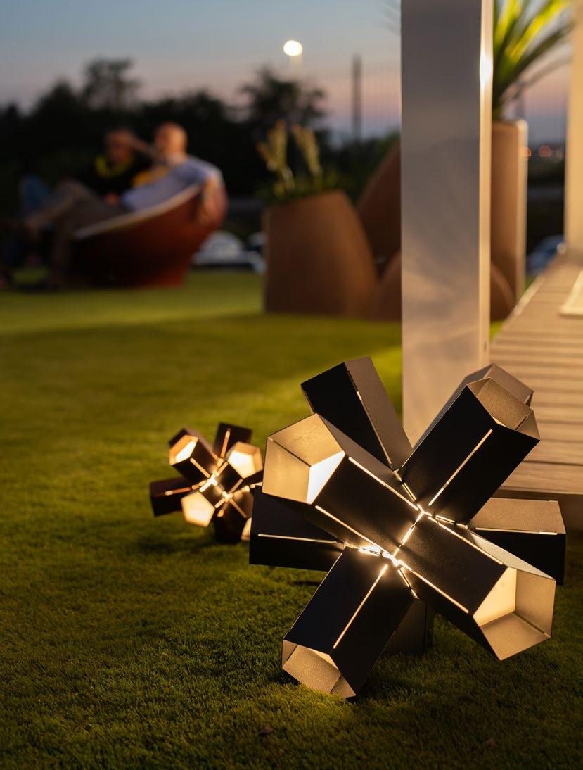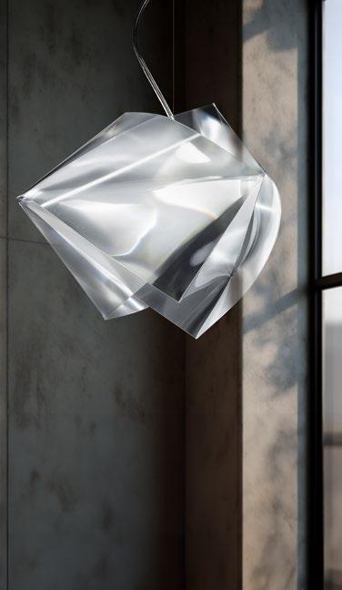Our ability to experiment allows us to create original shapes, adaptable within space, capable of bringing to life truly unique luminous sculptures. This approach has also led us to embrace new materials such as steel and polycarbonate while preserving the distinctive DNA and recognizable aesthetics of Slamp - crafted through interlocking, cutting, and folding techniques - for our first outdoor collections.
