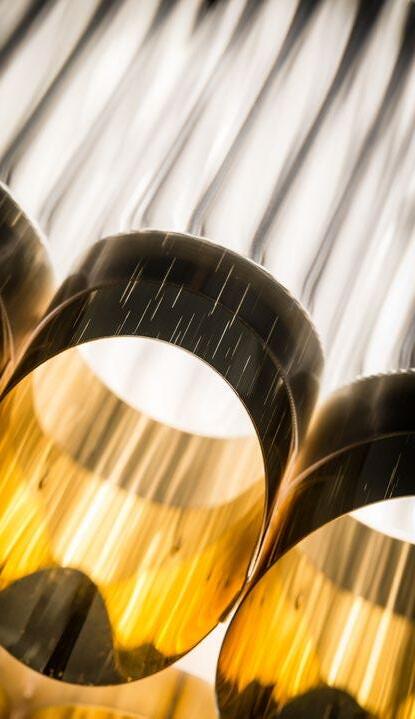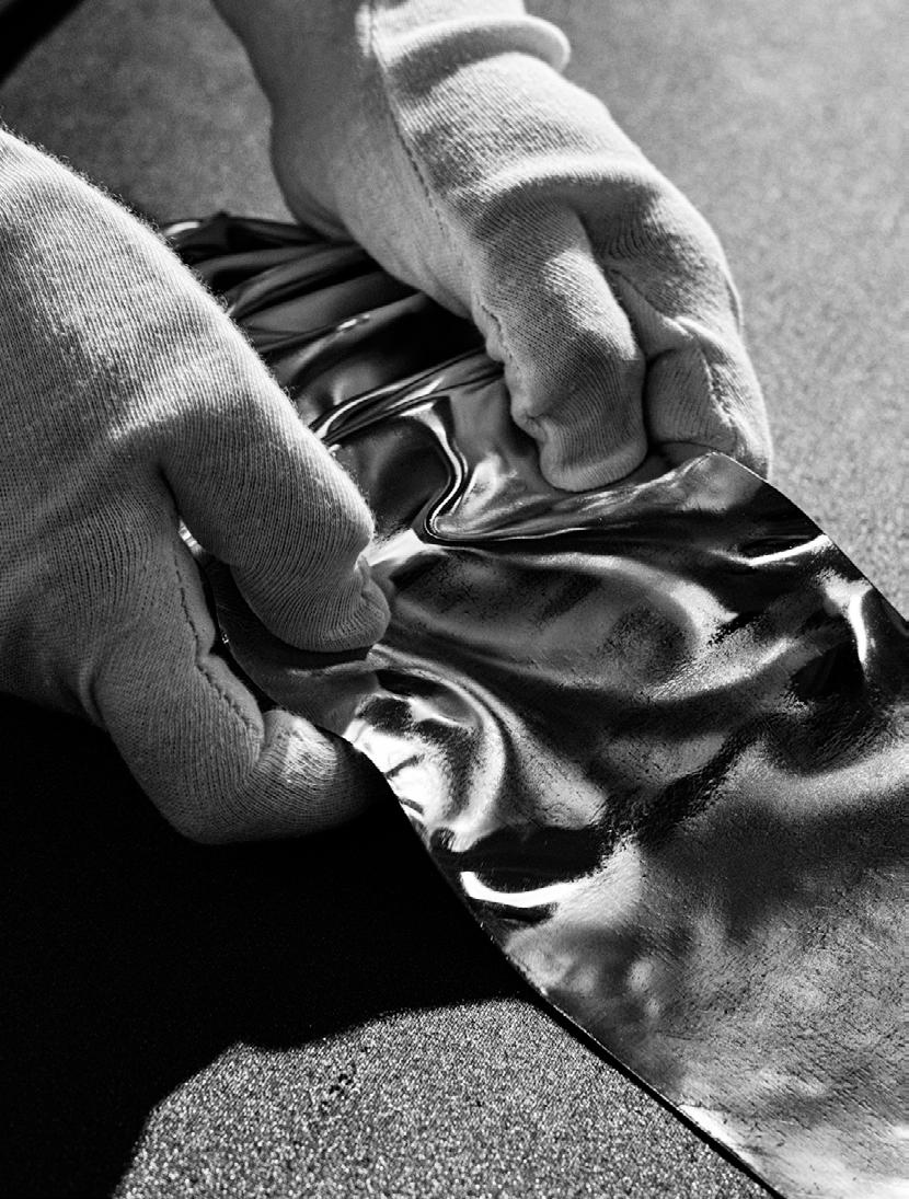 Nella Aria Gold le lance in Cristalflex® vengono metallizzate tramite evaporizzazione in camera iperbarica, scrupolosamente esaminate, poi tagliate tramite un sistema a controllo numerico e infine inserite nel box, intervallate da uno strato protettivo, al fine di rendere l’installazione da parte del cliente intuitiva e veloce.