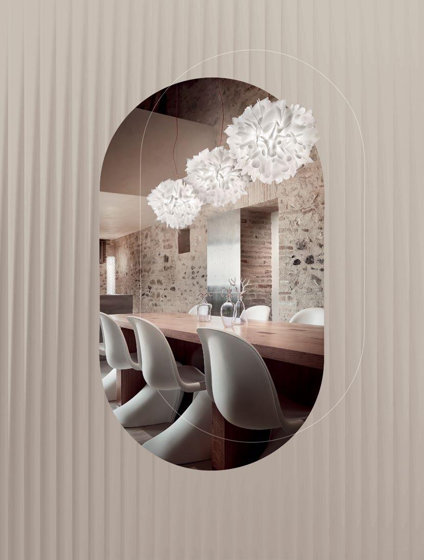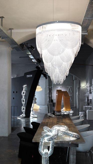 La nostra abilità di sperimentare ci consente di creare forme inedite, modulabili nello spazio, capaci di dar vita a vere e proprie sculture luminose uniche nel loro genere e ci ha portato ad accogliere anche nuovi materiali come l’acciaio e il policarbonato pur mantenendo il DNA e l’estetica riconoscibile propria di Slamp, fatto di incastri, tagli, piegature per le nostre prime collezioni outdoor.
