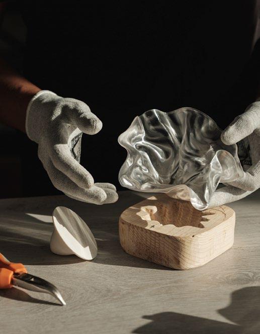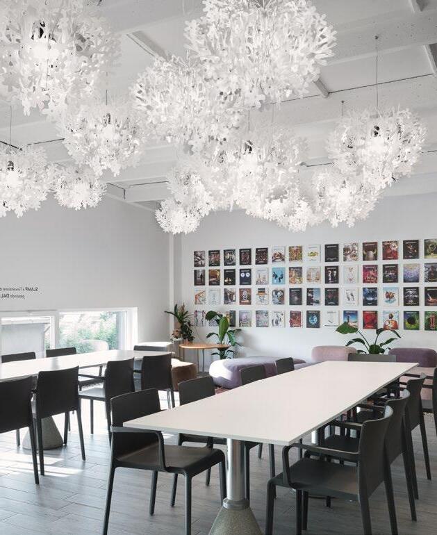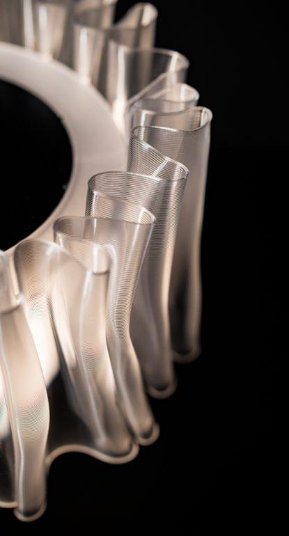 We believe in relationships and in the synergistic collaboration between our company and internationally renowned designers and archi-stars, who bring to life truly unique lighting sculptures. Since our founding, we have been deeply committed to a sustainable approach, using durable, recyclable techno-polymers while continuously optimizing material offcuts. Thanks to our coldcutting techniques and the meticulous design of our production site, Slamp operates with a low environmental footprint.