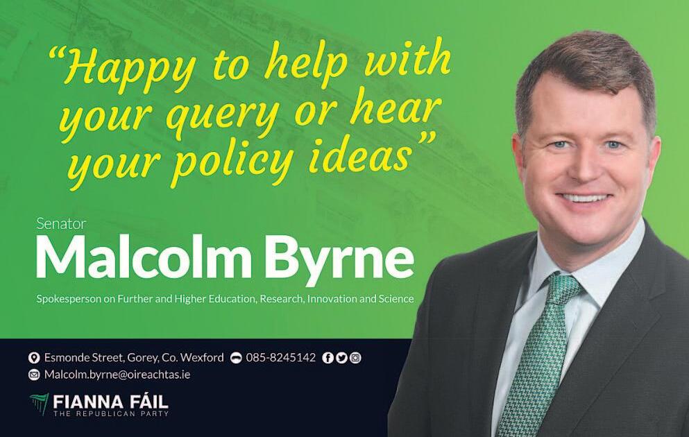 Cllr. Cathal Byrne New Generation. Working Hard For You. Your No. 1 PLEASE CONTINUE YOUR PREFERENCE FOR PAT KEHOE This size ad can be yours for just €50+vat. Telephone Frank at 087-2403310 for more details.