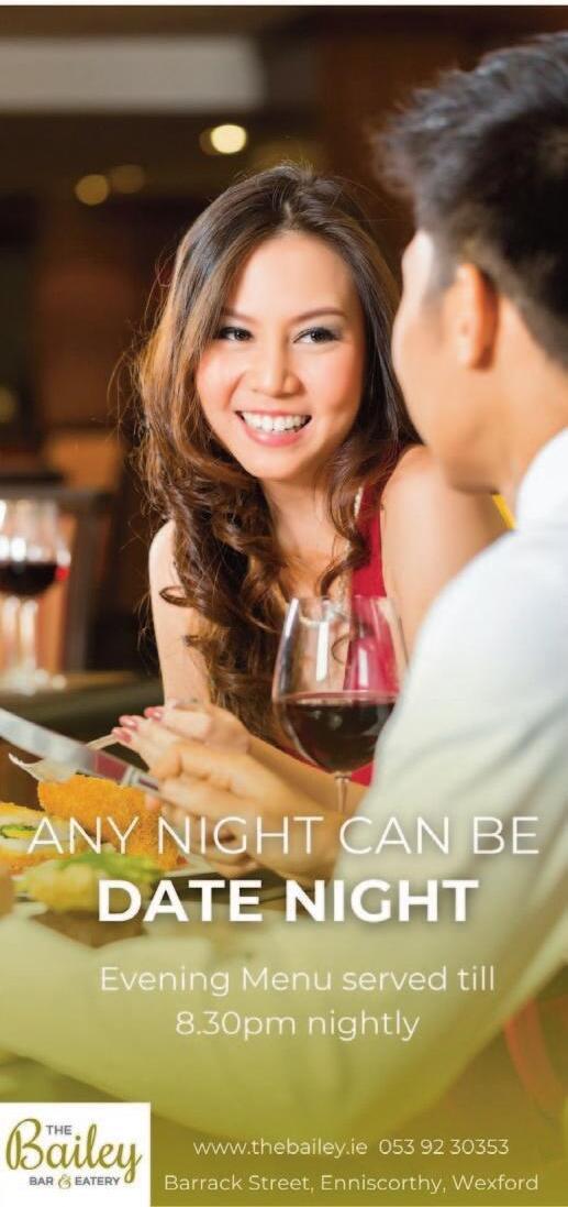 more... Barrack Street, Enniscorthy, Wexford, Y21 N524 www.thebailey.ie 053 9230353 Award Winning Family Friendly Restaurant & Bar FOOD SERVED ALL DAY Special Dietary Options Available FAMILY & KID FREINDLY WHILE STOCKS LAST