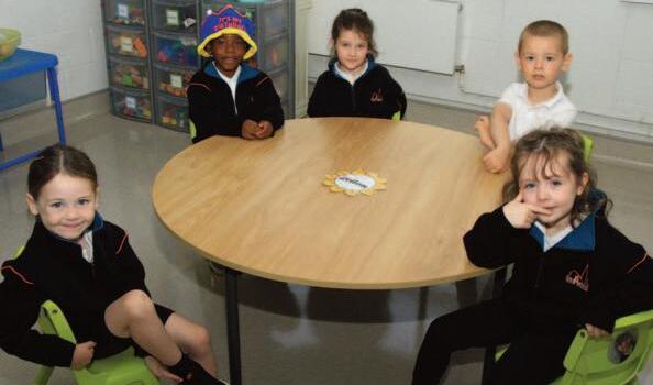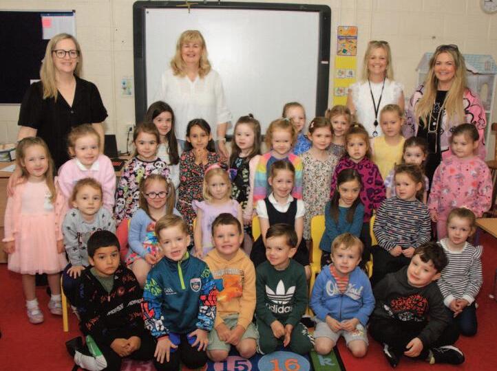 The children of Gaelscoil Inis Córthaidh who have started their school journey this autumn with their class teacher and school principal Judy Uí Ifearnáin (back left).