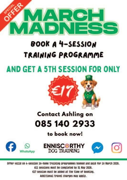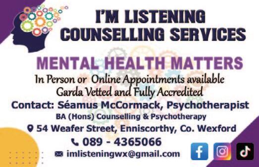 The popular website switcher.ie has named Enniscorthy as the third best ‘Work Life Balance’ town in Ireland with always lots happening around town for all to enjoy. So make sure to read our Leisure & Lifestyle section every month, in this issue it starts on page 52.