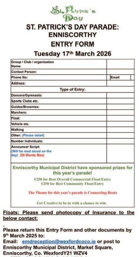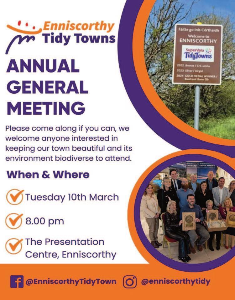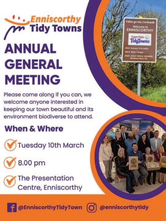 Enniscorthy Tidy Towns AGM on 10th March in The Presentation Centre. See page 12.
