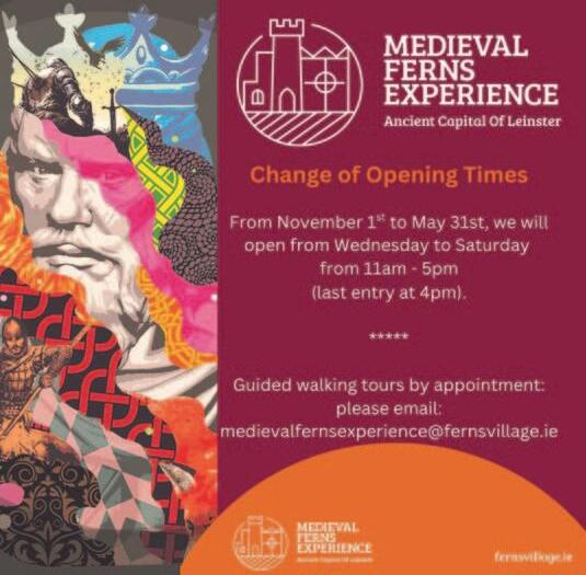 Enniscorthy’s population is expected to increase by 7,000 in the period 2025-2034. See page 11. Plans for the Enniscorthy Castle Heritage Quarter have been revealed. See pages 14-15.