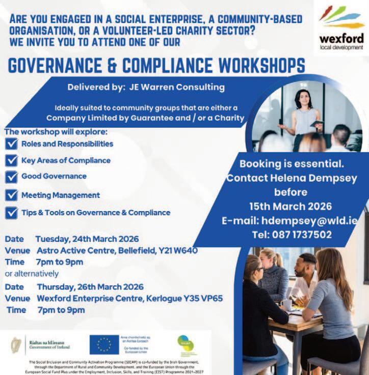 Booking is essential. To secure your spot, please email: together@enniscorthycu.ie or call 053 92 33835. For more details, please contact Enniscorthy Credit Union.