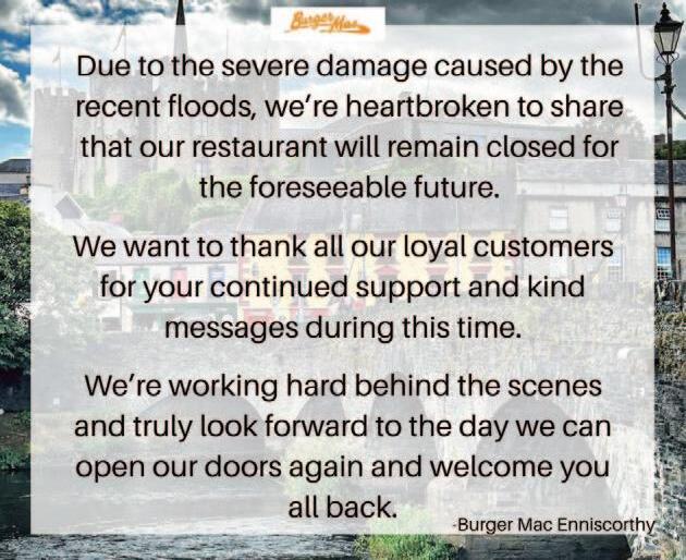 Interim flood relief measures are to be introduced in Enniscorthy, and fundraising continues for the flood victims. See pages 22-23.