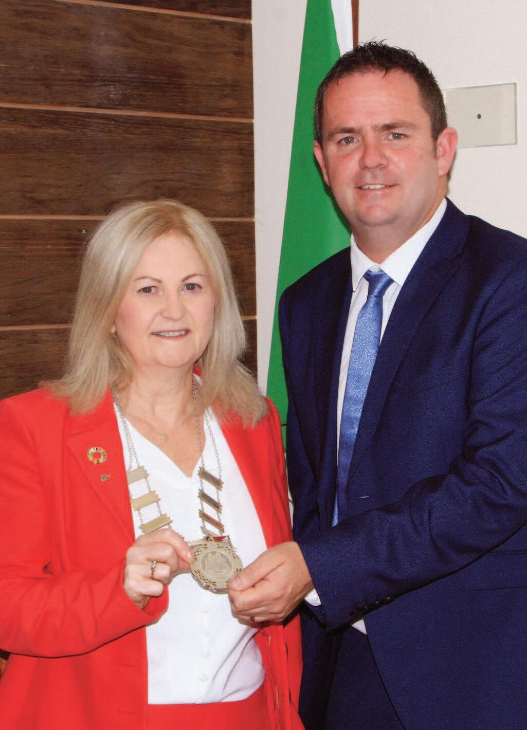 Above: Cathaoirleach Barbara-Anne Murphy with family members. L-R: Treacy Gibson, Fidelma Murphy, Máirín Kehoe, Cllr Barbara-Anne Murphy, Muireann Kelly, Matt Redmond. Left: Cllr Barbara-Anne Murphy with Leas Cathaoirleach Cllr Pat Kehoe.