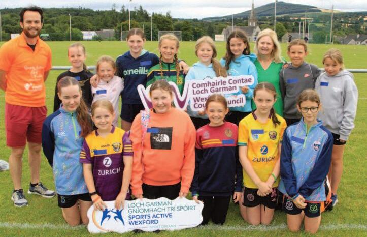 Above: Cllr Barbara-Anne Murphy, Cathaoirleach of Enniscorthy Municipal District, with Ross O’Loughlin’s athletics group. Below: Cllr Murphy with the gaelic football 7-year-olds.