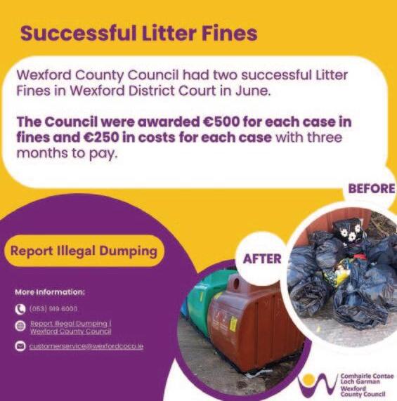 To log a report regarding any dumping, street litter, road oil spills and potholes, ring Wexford Council on (053) 919 6000 or email: customerservice@wexfordcoco.ie