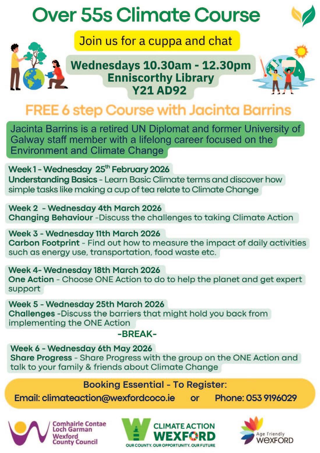 Climate change has never been so relevant so a new course for the over-55s, starting later this month at Enniscorthy Library, is highly recommended.