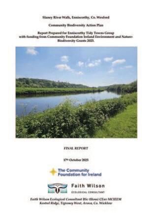 A Community Biodiversity Action Plan in relation to the Slaney River Walk in Enniscorthy was officially launched on 27th November 2025 at an event in the Riverside Park Hotel. The Plan has been produced for Enniscorthy Tidy Towns by the ecological consultant Faith Wilson.