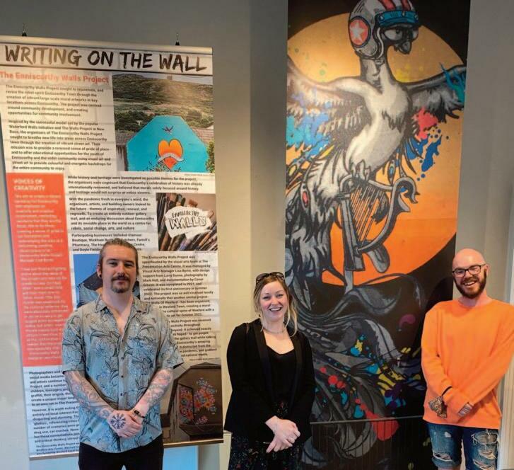 Bottom: Conor Gibson, Lisa Byrne, Larry Dunne of The Presentation Centre, Enniscorthy, at the exhibition launch.