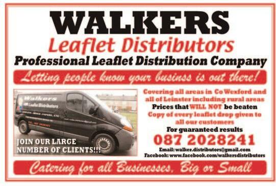 St Patrick’s School, Enniscorthy, will be holding a Christ mas Fair in the new school on December 4th. If you would like to put in a stall please contact Catherine Cloke on 086 4079966. n