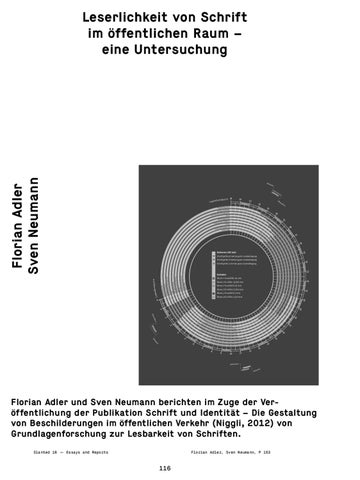 Florian Adler und Sven Neumann berichten im Zuge der Ver öffentlichung der Publikation Schrift und Identität – Die Gestaltung von Beschilderungen im öffentlichen Verkehr (Niggli, 2012) von Grundlagenforschung zur Lesbarkeit von Schriften. Slanted 18 — Essays and Reports