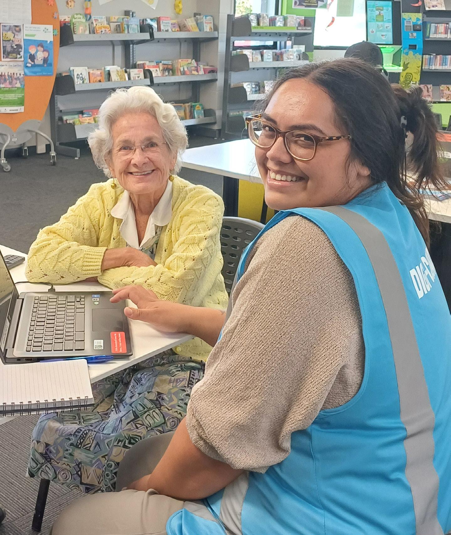 IMAGE Digi-Coach PhoebeEllen with customer at Dinsdale Library in Hamilton.
