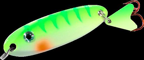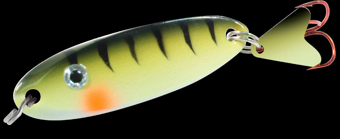 Mimics a young minnow fry to perfection. It’ll land you all types of panfish, including crappies, perch, and sunfish. Dolphin shaped glider tail swims with irresistible action.