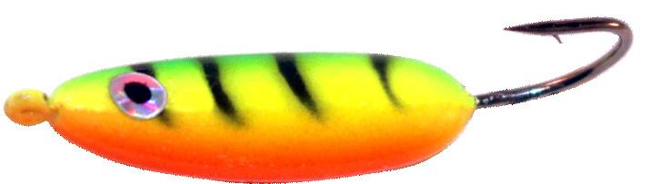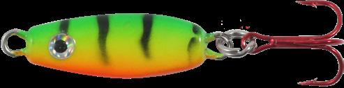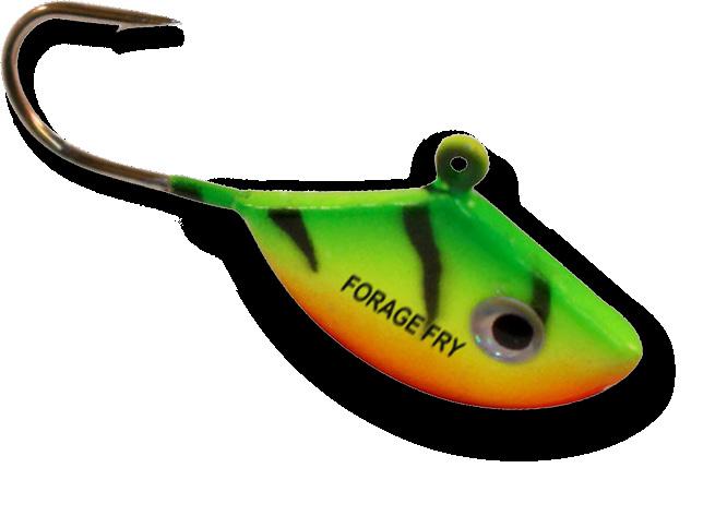 The Tungsten Flat Fry Jig is designed as a small panfish Jig that hangs at a 90 degree angle to imitate small fish, a favorite forage of Perch, Bluegill and Crappies. This is especially important in pressured panfish waters offering something that looks familiar and natural.