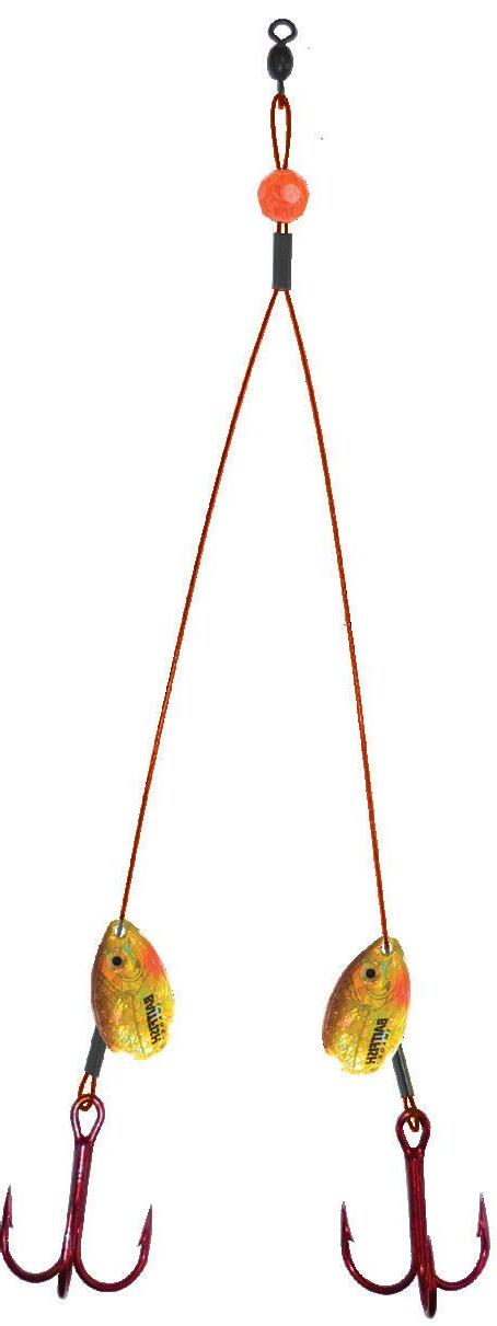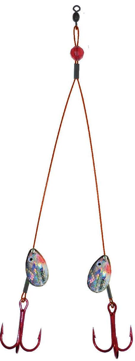 • Constructed with 7” - 15 lb. Bionic® Fluorocarbon Leader & sports an alluring Baitfish-Image® Attractor Blade and razor sharp blood red treble hook for both dead and live bait