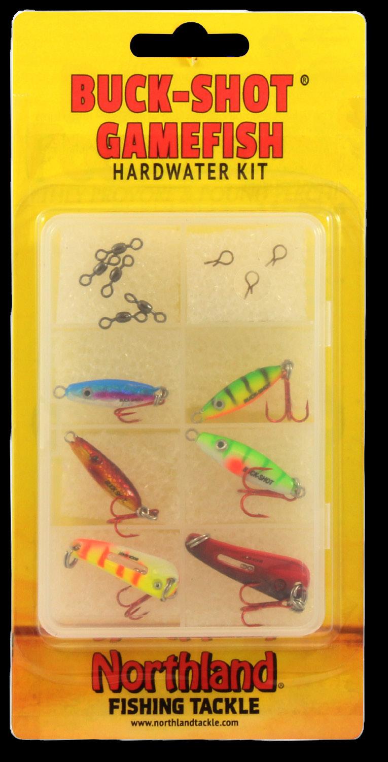 16-piece kit includes a deadly half-dozen jigging lures, specially selected to cover a wide range of ice fishing conditions. All feature Northland’s enhanced UV finish, which gathers and reflects ambient UV light for maximum visibility in dark water and wide-ranging attraction in clear water.