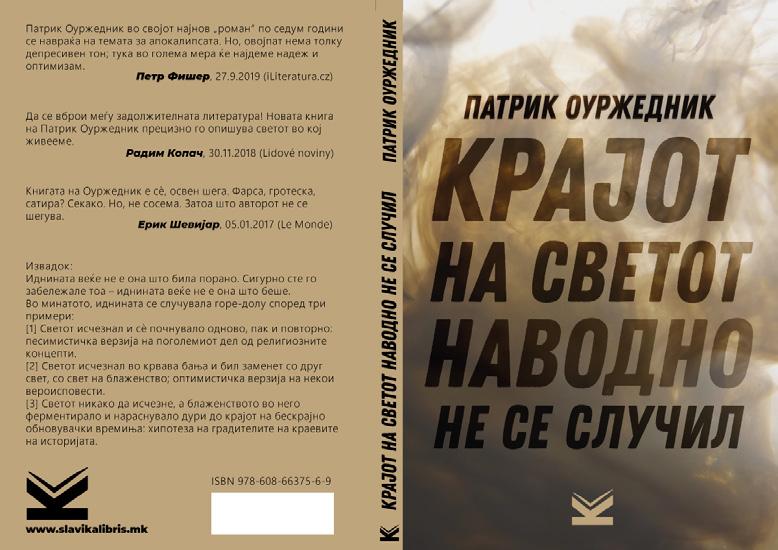 .pdf 1 20/04/2023 14:56:08 Во долината на јужната страна од Кавказот, жителите на грузиските села живеат спокоен живот, заедно се молат на различни богови, седат на иста маса и наздравуваат со вино, сè додека од чеченската страна не почнат да доаѓаат бегалци и вооружени бунтовници од земјата зафатена со војна. Лара е мајка на две машки деца и прави сè што е во нејзина моќ за нивното добро и за нивната посветла иднина. Ги спасува од виорот на војната, која е секогаш на чекор од нив. Но дали е тоа доволно за нивната среќа? Не го одобрувал тоа што мајка му е активна во хорот во домот на културата и пее песни што не му се посветени на Севишниот, што не го слават името Негово. Уште повеќе го згрозувале пријателките на мајка му од играорната група. Според него, танецот, воопшто, како разуздано однесување што води до искушение требало да се забрани. Со лошо прикриен прекор ѝ обрнувал внимание дека жените во долината, иако имаат муслиманска вероисповед, не се облекуваат според божјите закони, излегуваат од дома без надзор на мажи, а на улица не ги покриваат лицата и косите. - Ти би ги затворил жените дома! – му рекла еден ден за време на ручекот. – Зборуваш како да сакаш да го вратиш времето во средниот век. Па, нели, живееш во Европа, во напредок! Не ти е срам! И ништо кај нас не ти се допаѓа, на сѐ се жалиш. Извадок: www.slavikalibris.mk ISBN 978-608-4986-02-7 12 mm grb FINAL.pdf 1 11/10/2022 14:28:09 230 220 350 489 200 200 350 385 САЕМСКИ ПОНУДИ 18-24 АПРИЛ www.slavikalibris.mk