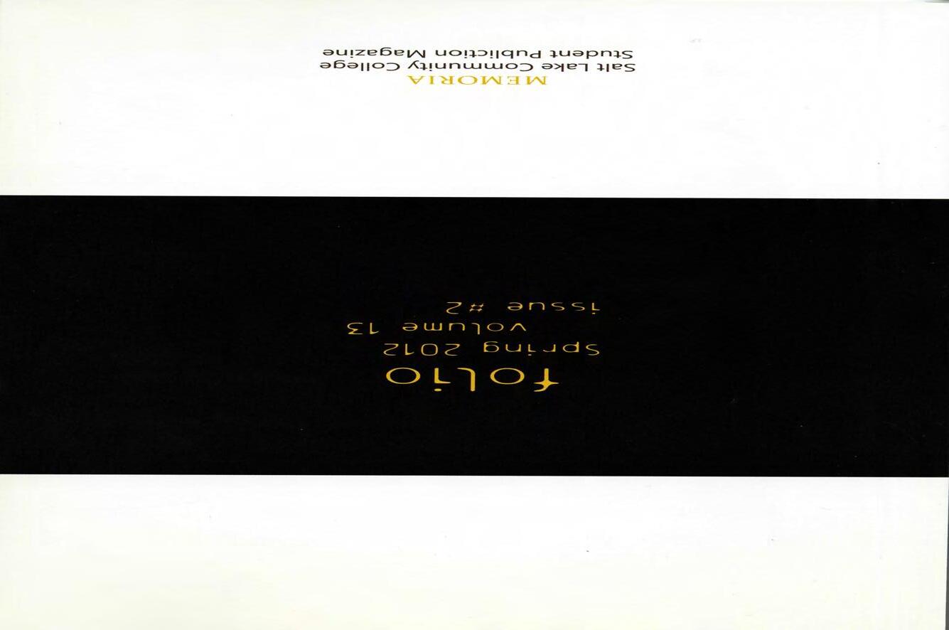 Salt Lake Community College is not responsible for the opinions expressed i n Folio, nor do the pieces r epresent an official position at Salt Lake Community College.