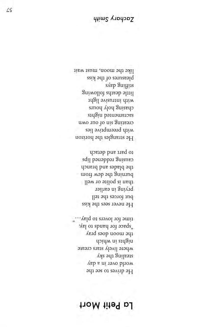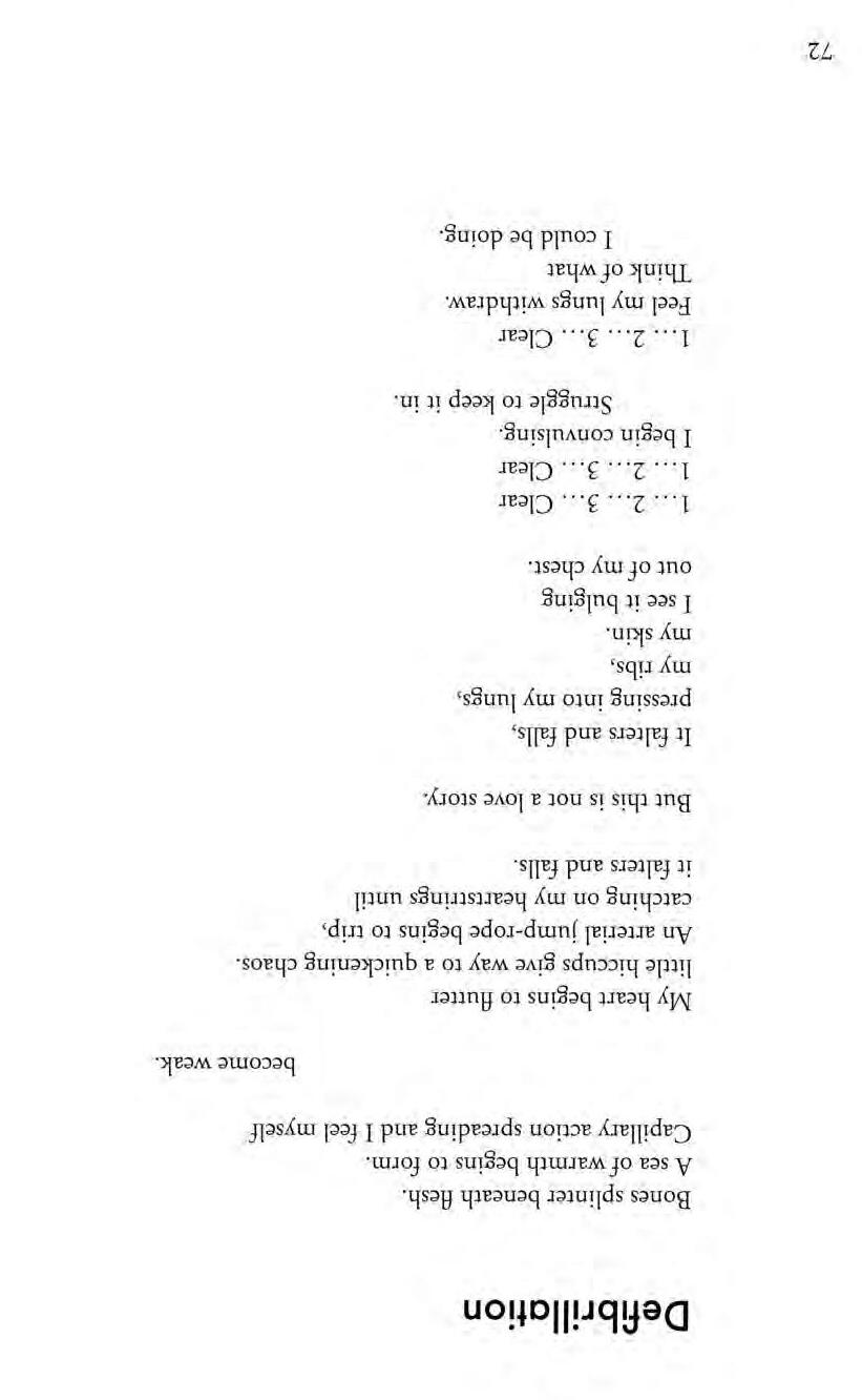 Bush 60 Natalee Wilding Divide by Zero 61 Ian Hilton co 63 Nie Contreras Exposition Needed 64 Anonymous Waiting 68 Jaclyn Clark A Warrior's Meal 69 Gabriel Thompson Desert Death 71 Raydon Cardenas Defibrillation 72 Ian Hilton Casino 74 Dave Greenwood Little Diamonds 75 Corey Young Life's Grate 77 Sarah Abraham Even Beauty Has Its Thorns 78 Sarah Abraham Limblessened 79 Tony Chidester Never Had to Ask 80 Jessica Judd The Front Bottoms 81 Natalee Wilding Valley of Fire 82 Olga Assayah VII