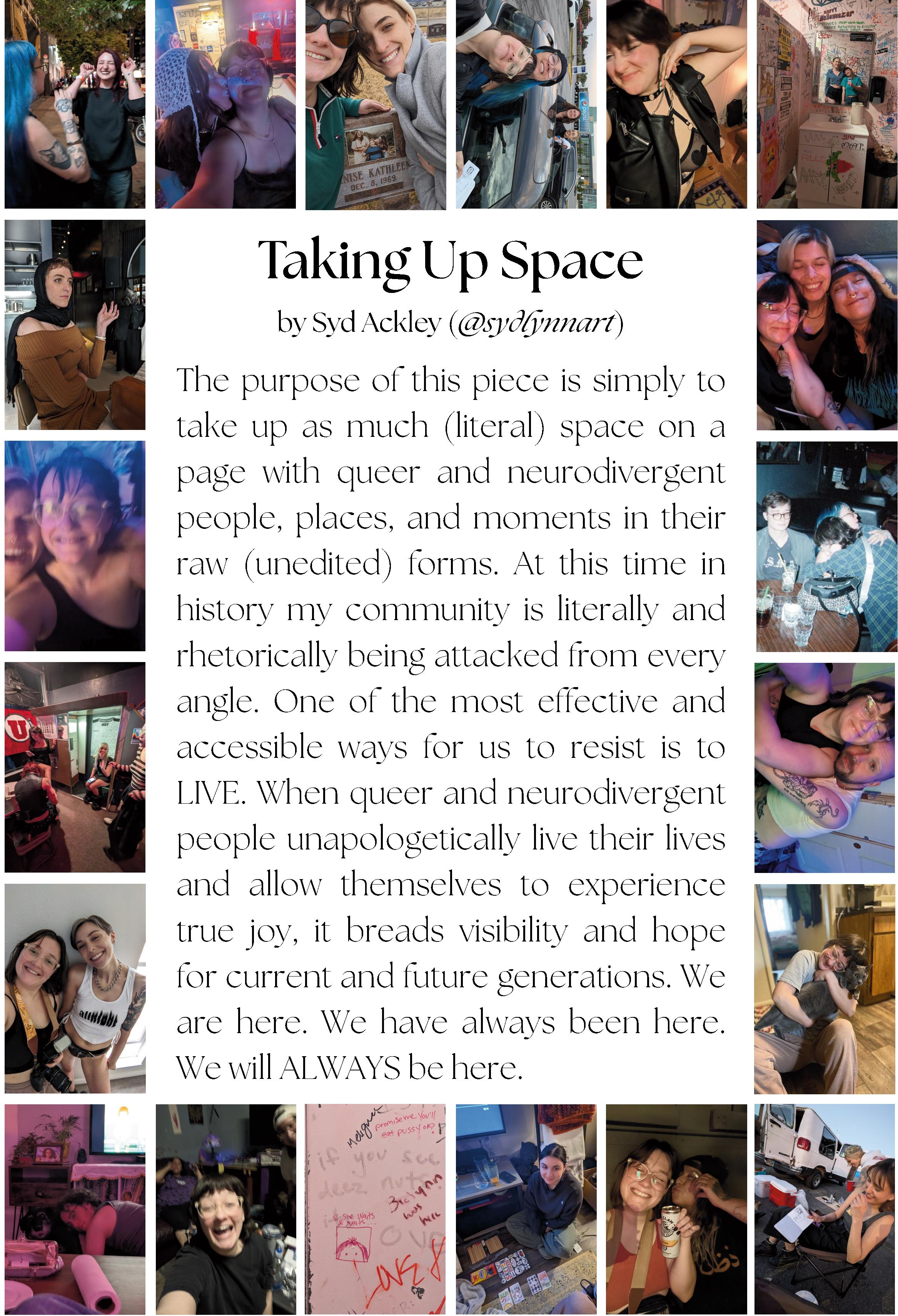 Many of the works in this publication ask us to consider the following question: Is it fear that creates the monsters, or the monsters that create the fear? The answer may be both. The monsters we imagine are the ones we bring into being. The pieces featured here all exist in that tension, to interrogate, to witness, and to ask what it means to live, love, and resist in a monstrous time.