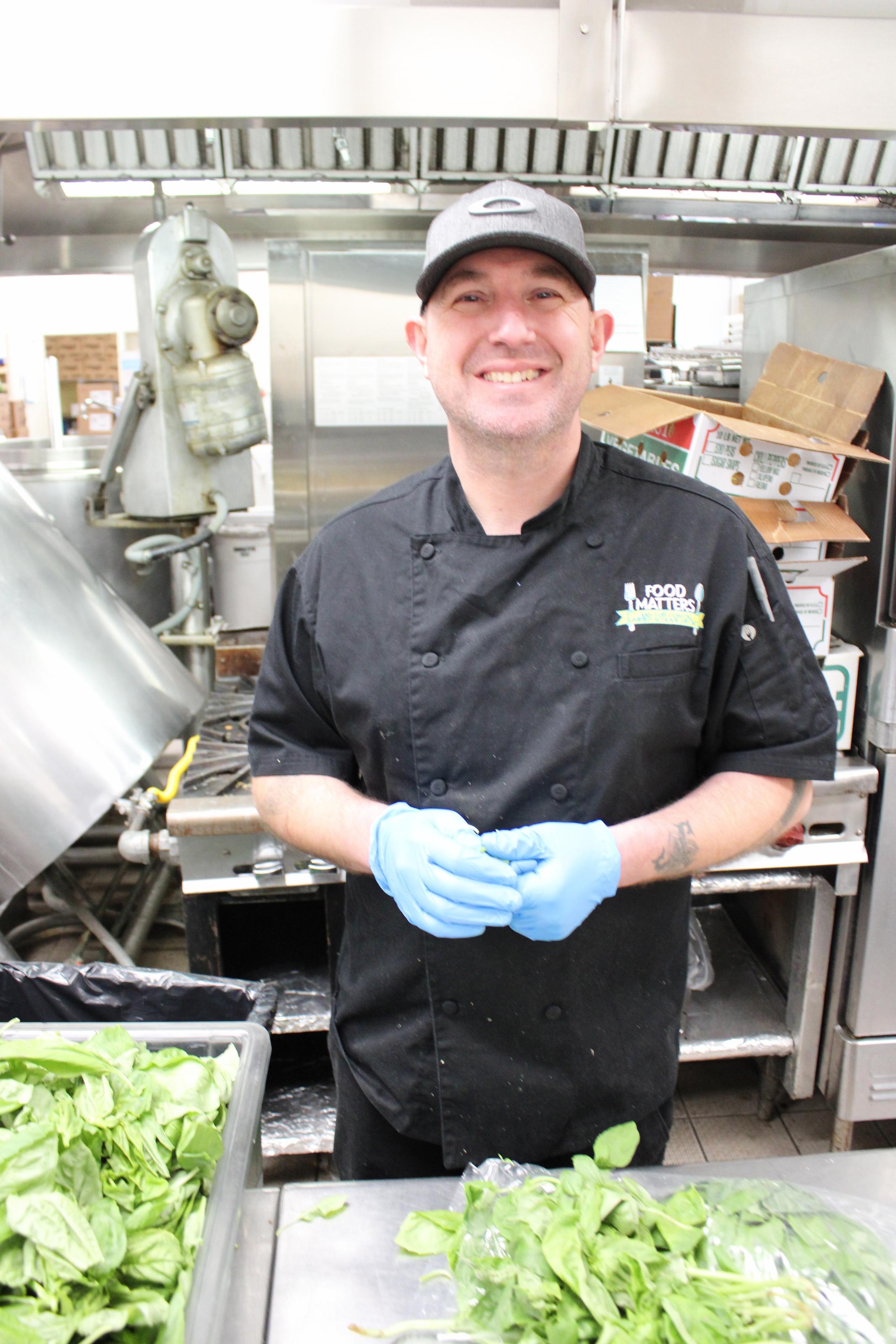 Despuésde20añosde trabajarenrestaurantes,Chris tomóuntrabajoenSLCUSDy pasóalacomidaescolar Chrisdisfrutausarsu experienciaculinariapara conectaralosjóvenes estudiantesconcomida buenaysaludablequesabe muybien.