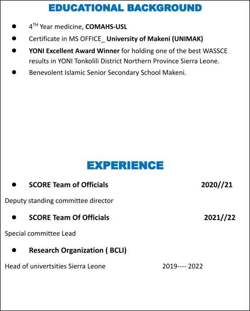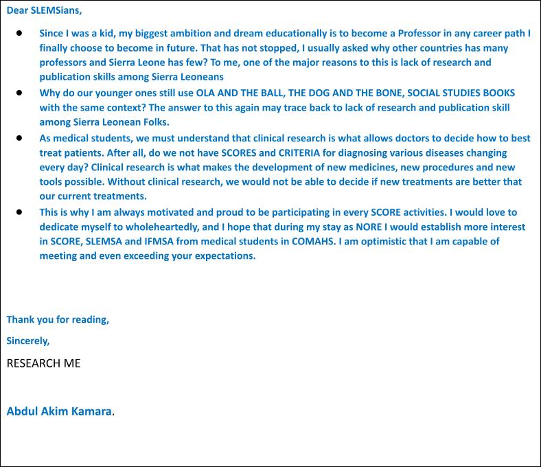 ABDUL HAKIM KAMARA - Candidature for NORE, EB 2022/23 by Sierra Leone Medical Students' Association - Issuu